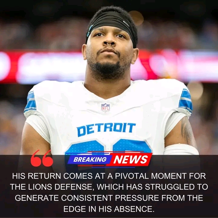 It’s a painful blow for a defense that has been fighting to find consistency on the edges, especially with key divisional games looming. Davenport was expected to be a major rotational weapon in Aaron Glenn’s scheme — a big body who brings speed, power, and veteran savvy. Instead, Detroit now must lean heavily on emerging names and younger depth pieces to keep their pass rush alive.