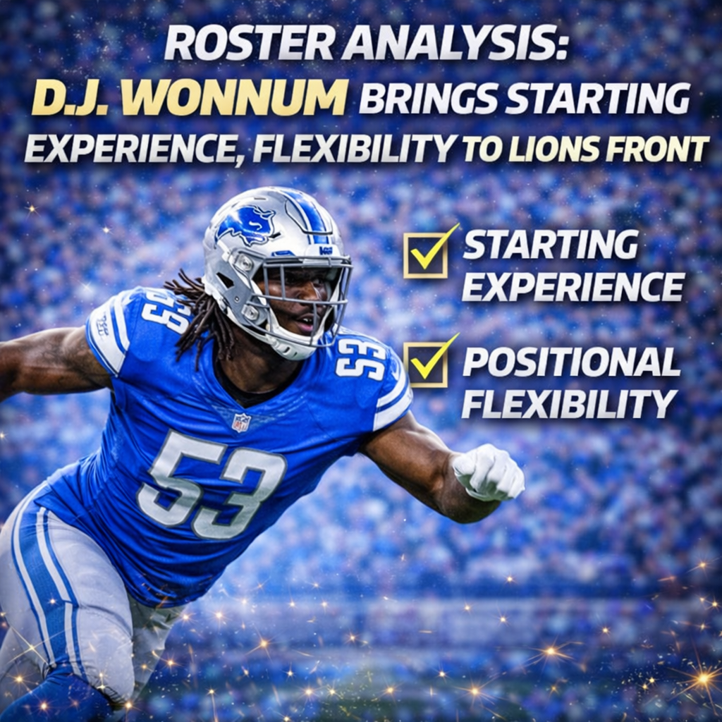 The Detroit Lions didn’t just add depth when they signed D.J. Wonnum — they added experience, versatility, and much-needed flexibility to their defensive front.