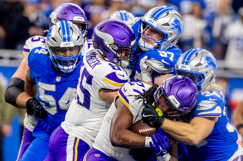 With Christian Mahogany sidelined and multiple starters battling lingering injuries, Detroit’s protection unit struggled to keep quarterback Jared Goff upright. The run game also sputtered, forcing the Lions into tough passing situations where the Vikings’ pass rush took full advantage.