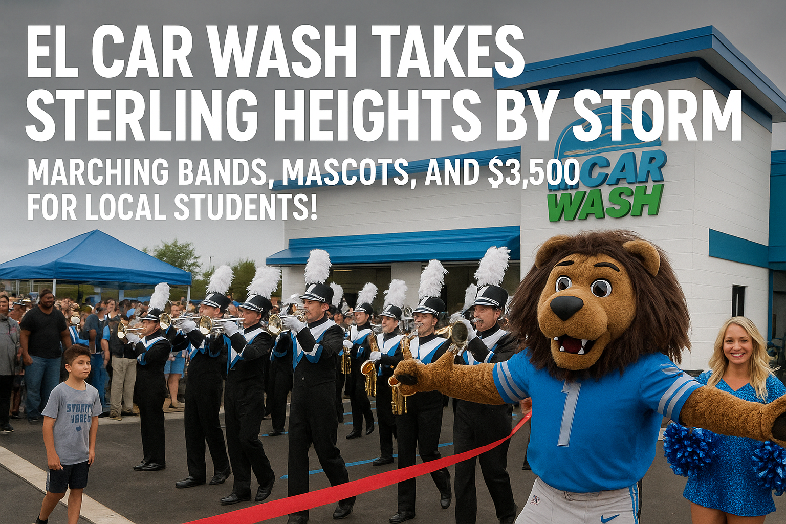 Sterling Heights, Mich., got a little brighter last weekend as El Car Wash opened its newest location—and it wasn’t just about shiny cars. The grand opening transformed into a full-blown community celebration, complete with marching bands, mascots, giveaways, and a meaningful contribution to local students.