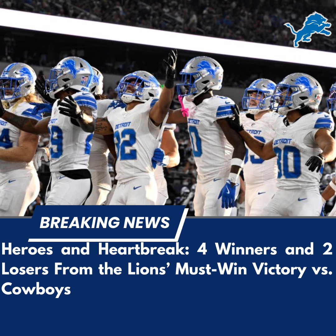 Despite a growing injury list, Detroit delivered one of its most complete performances of the year. When Dallas threatened late, the Lions leaned into what they trusted most: a fast, balanced offense powered by Jared Goff’s command and Jahmyr Gibbs’ explosive versatility. From star turns to costly setbacks, here are the four biggest winners—and two notable losers—from Detroit’s season-saving triumph.