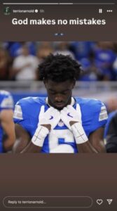After finding out he’ll be sidelined “for a long time” due to a shoulder injury, Detroit Lions cornerback Terrion Arnold opened up to fans with a powerful Instagram post that revealed his mindset through adversity.