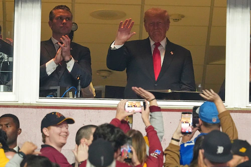 The President’s visit wasn’t without off-field headlines. In the days leading up to the matchup, Pat McAfee announced on his show that Trump would be attending the game. Shortly after, reports surfaced that an intermediary from the White House had approached the Commanders’ ownership group with an unusual request — that the team’s upcoming stadium in Washington, D.C., be named in his honor.